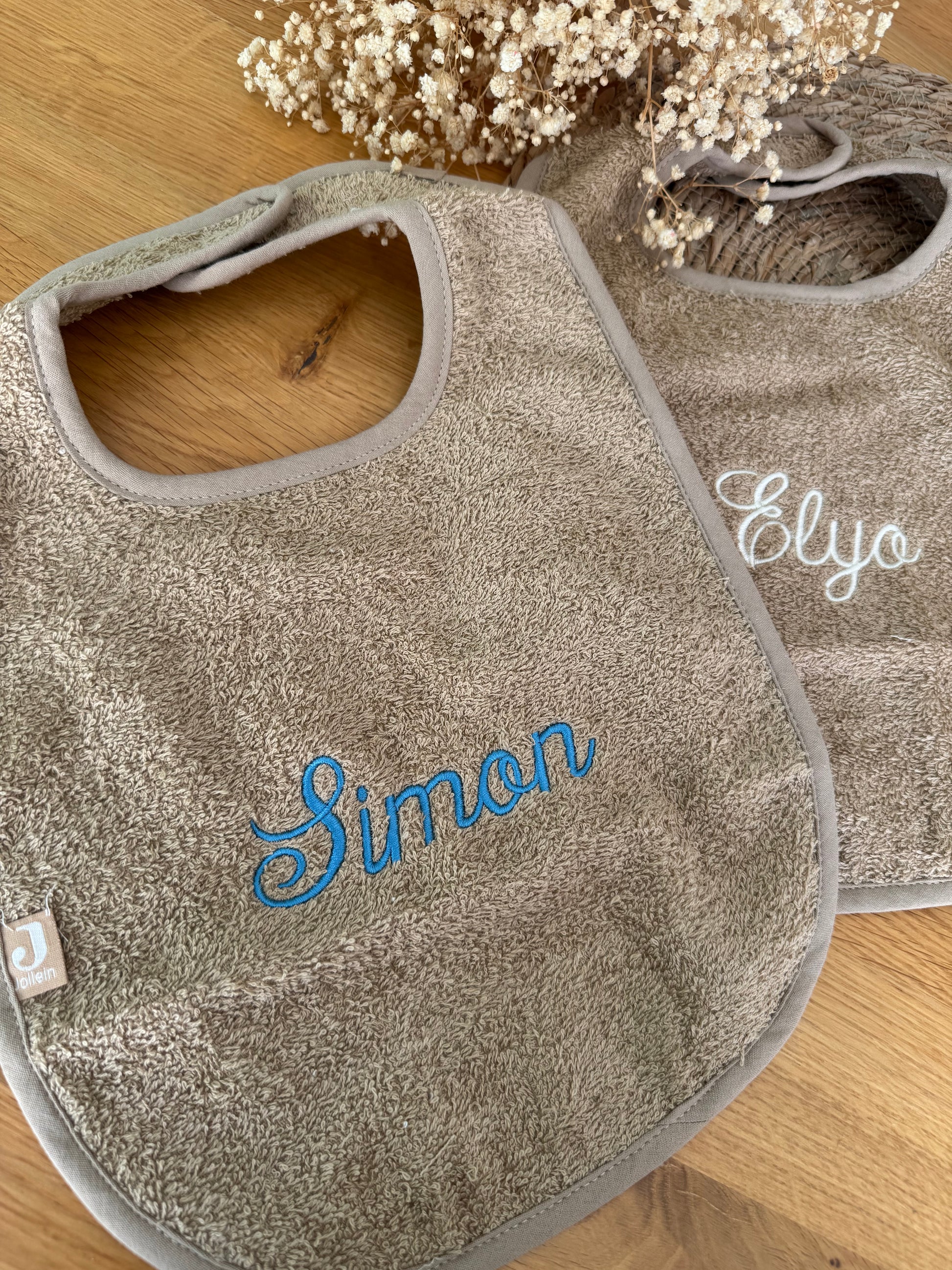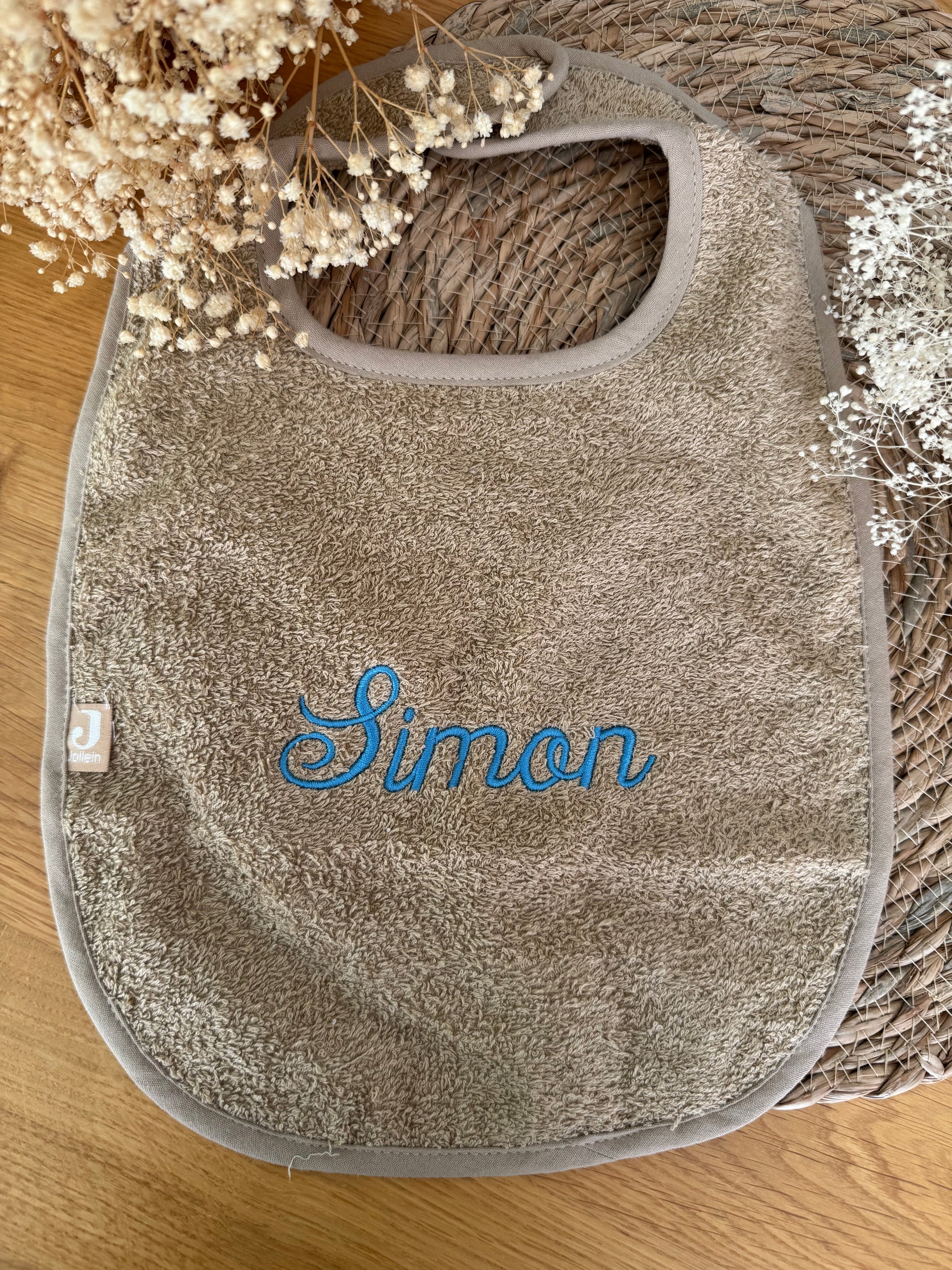 Ce bavoir en éponge, mesurant 30x37 cm, allie douceur et praticité. Son attache scratch permet une accroche facile, tandis que la broderie personnalisable au centre offre une touche délicate et unique. Idéal pour protéger les vêtements de bébé tout en assurant son confort au quotidien.