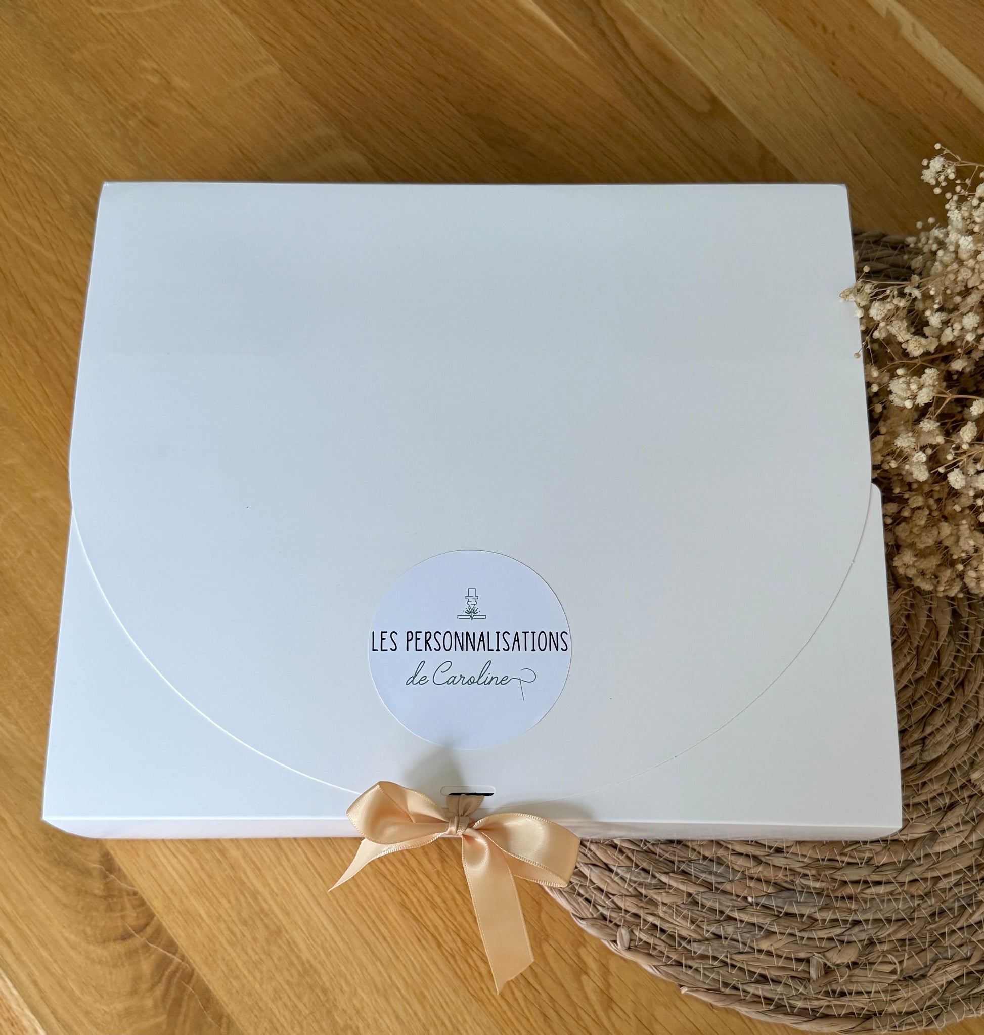 Boîte en carton léger idéale pour créer votre coffret cadeau personnalisé. Sélectionnez les articles que vous souhaitez customiser et complétez votre ensemble avec cette boîte élégante. Le packaging parfait pour offrir vos créations avec style.