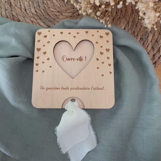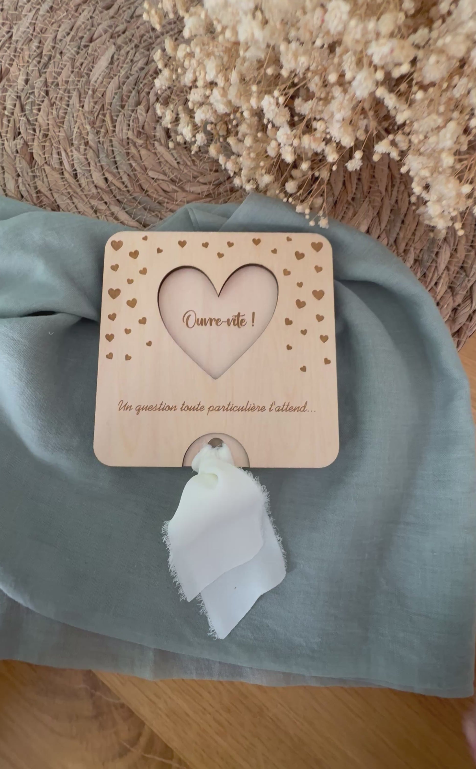 Envie de faire une demande spéciale de façon originale et mémorable ? Cette carte en bois à tirer est la surprise parfaite pour poser LA question de votre choix à une future marraine, un parrain, un témoin, une demande en mariage ou toute autre personne chère à votre cœur.