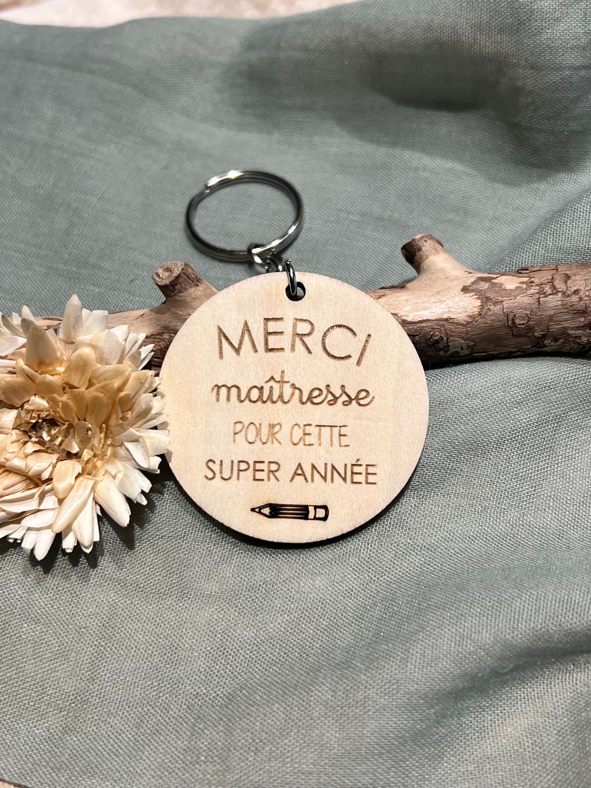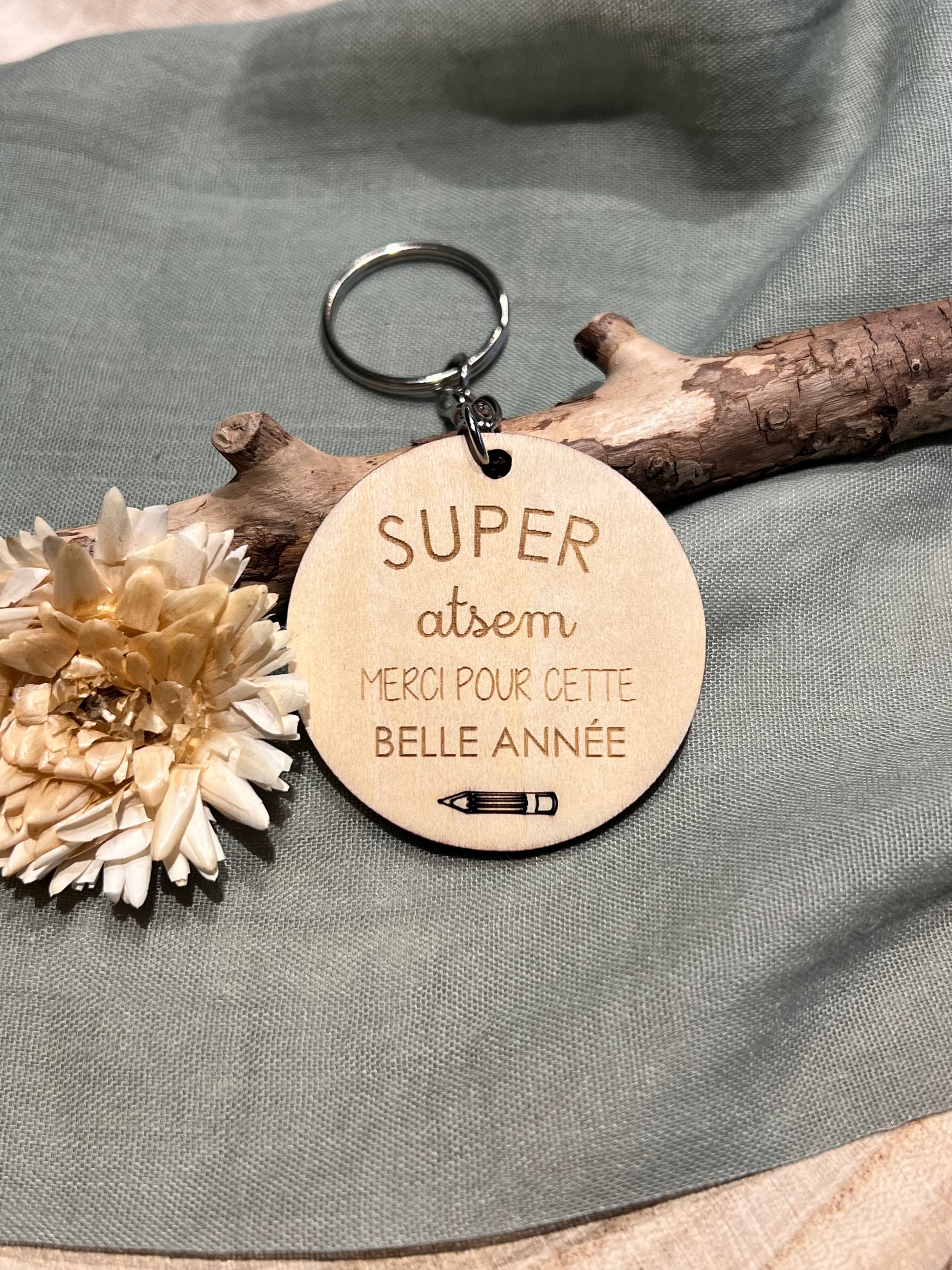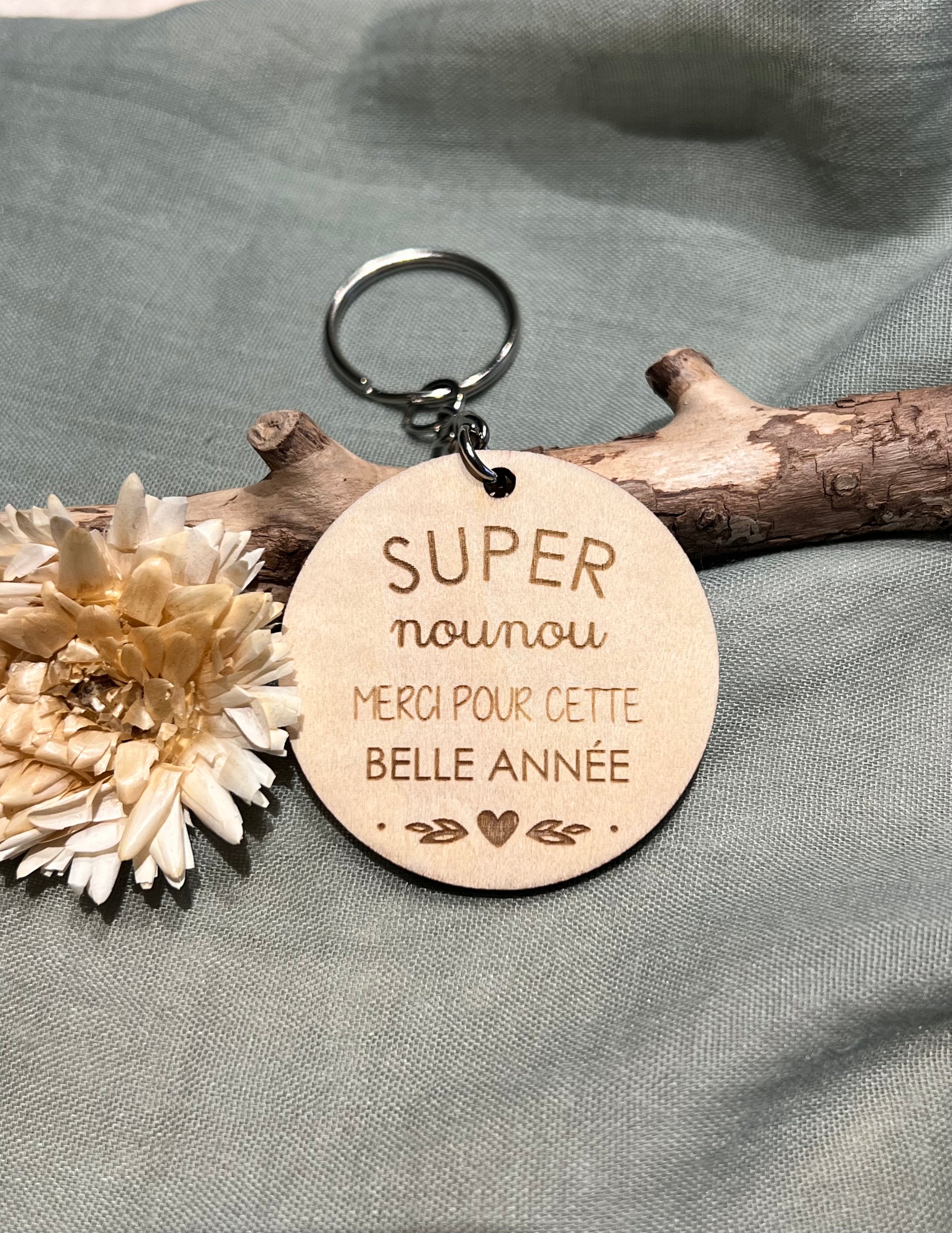 Ce porte-clés en bois, gravé avec soin, est le cadeau idéal pour remercier une super nounou, une super ATSEM ou toute autre personne qui a pris soin de votre enfant jour après jour.